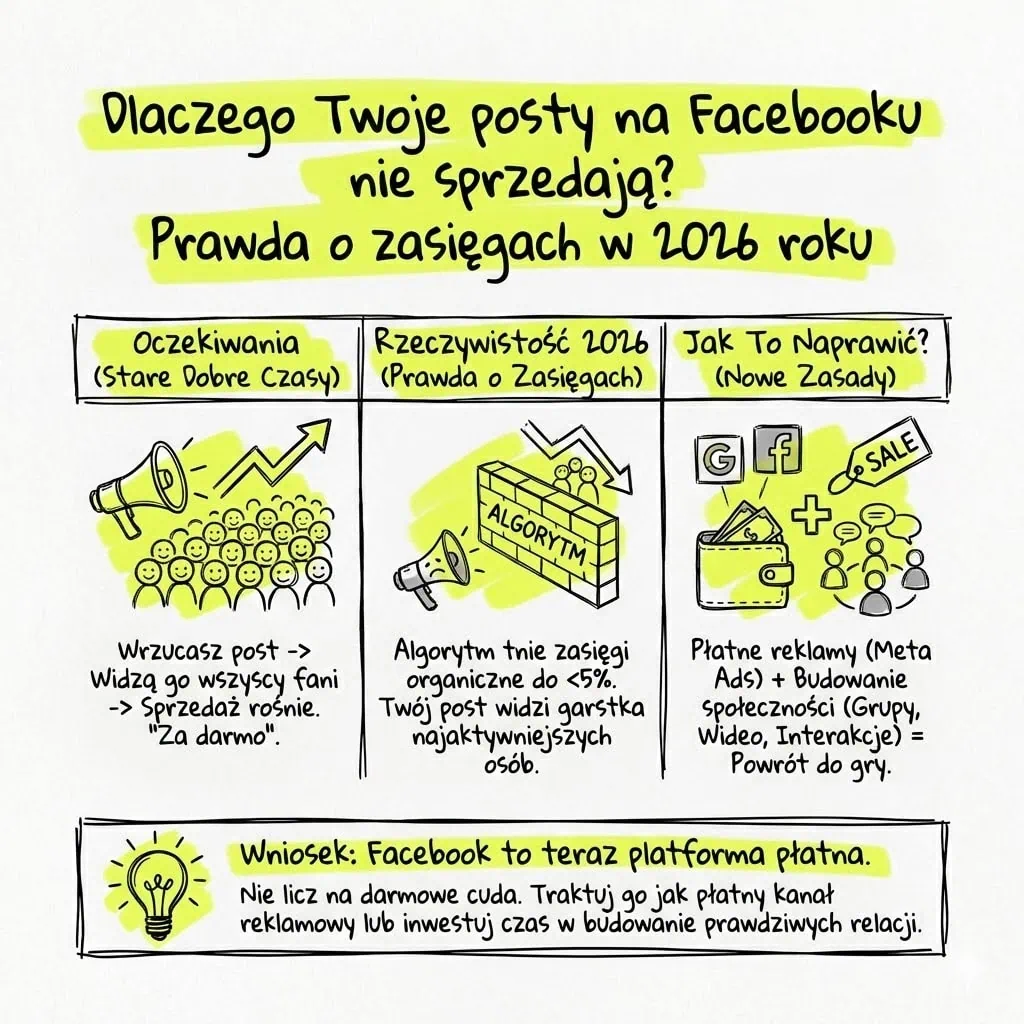 Dlaczego Twoje posty na Facebooku nie sprzedają? Prawda o zasięgach w 2026 roku