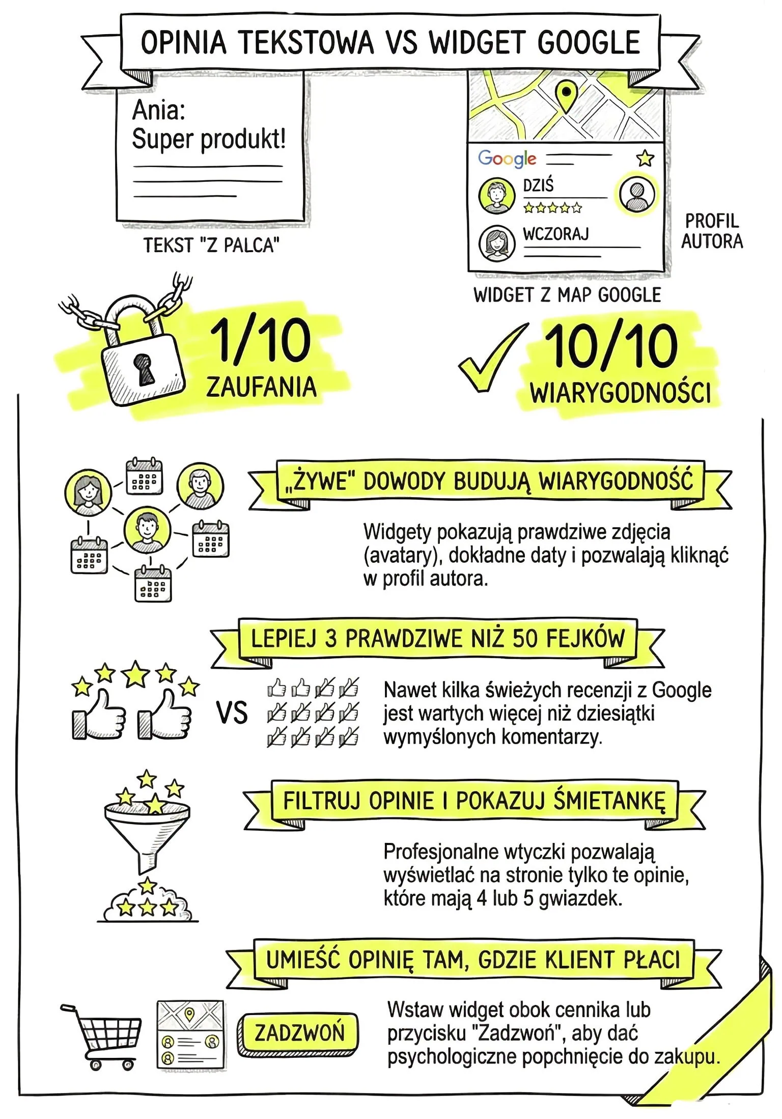 W internecie panuje kryzys zaufania. Klienci są wyczuleni na fałsz. Statyczna opinia, wpisana tekstem w kod strony, jest dziś warta tyle, co zeszłoroczny śnieg. Nie jest żadnym dowodem.